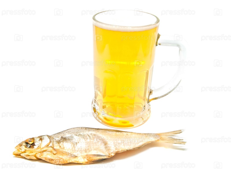 Кружка светлого пива и рыба