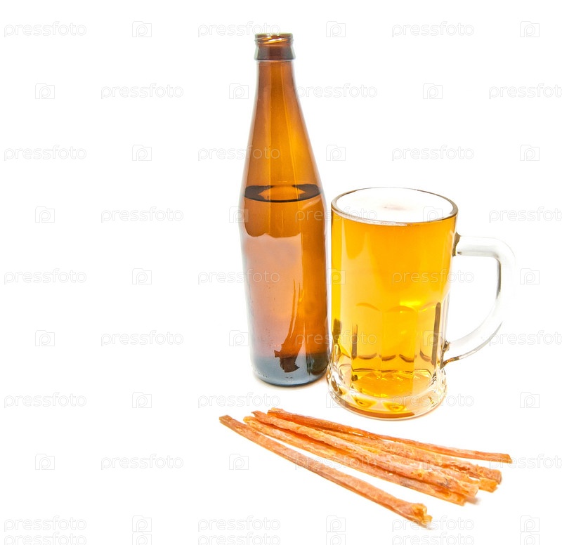 Стакан светлого пива и закуска