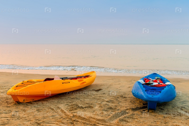 Два каяка на пляже рано утром