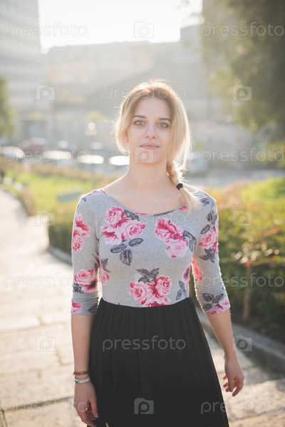 Молодая красивая блондинка на улице