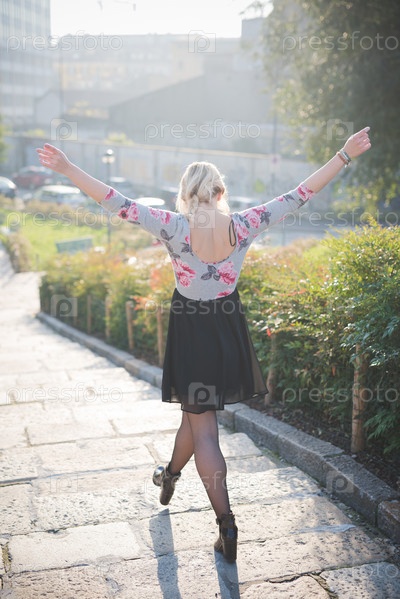 Молодая красивая блондинка на улице