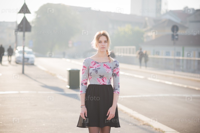 Молодая красивая блондинка на улице