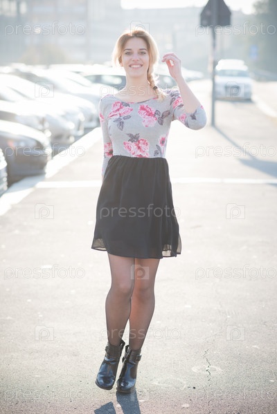 Молодая красивая блондинка на улице