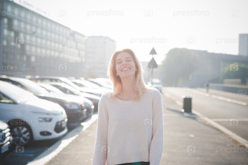 Молодая красивая блондинка на улице