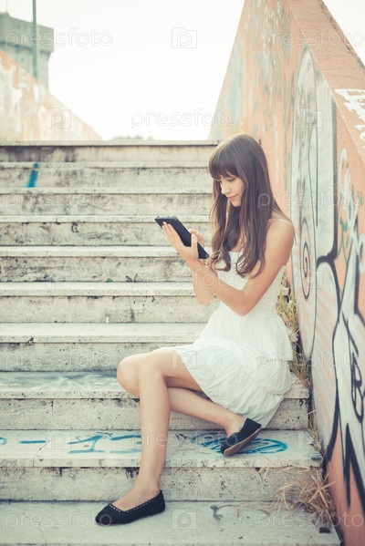 Молодая женщина в белом платье с планшетом