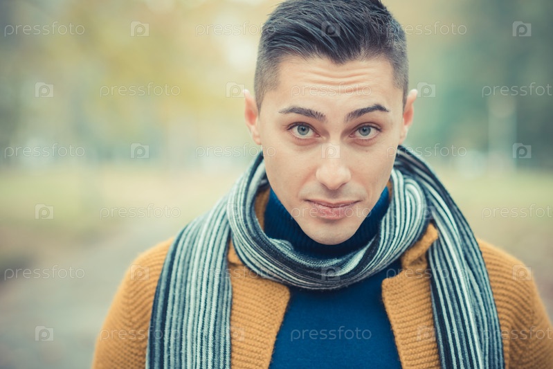 Молодой красивый мужчина в осеннем парке