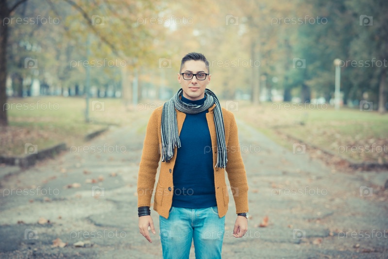 Молодой красивый мужчина в осеннем парке