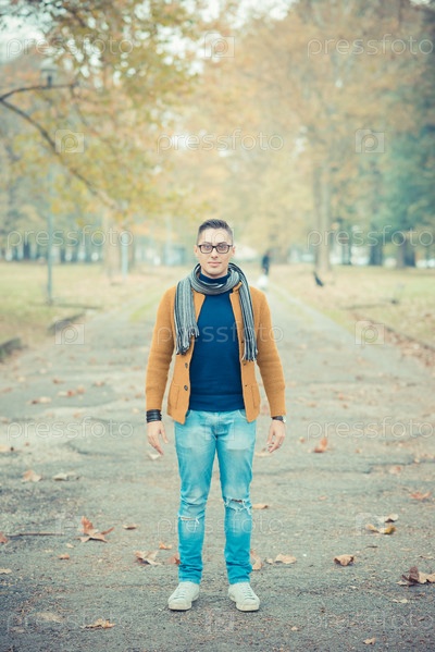 Молодой красивый мужчина в осеннем парке