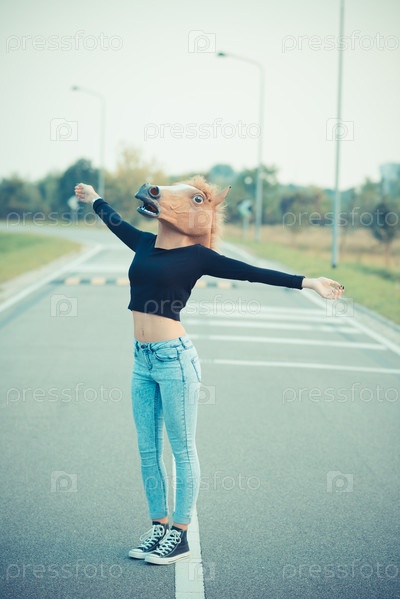 Женщина в маске лошади