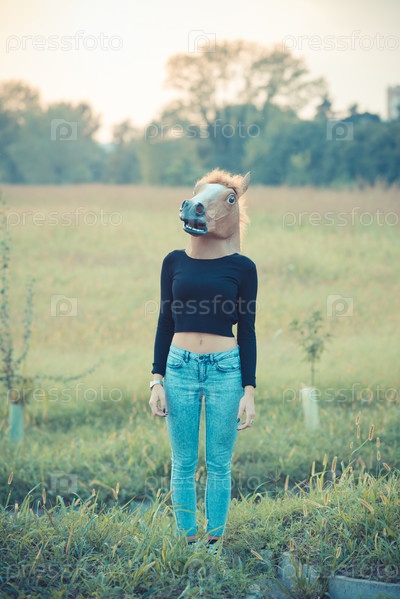 Женщина в маске лошади