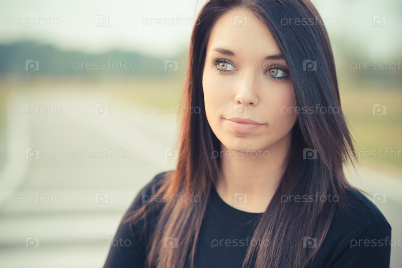 Молодая красивая брюнетка на дороге