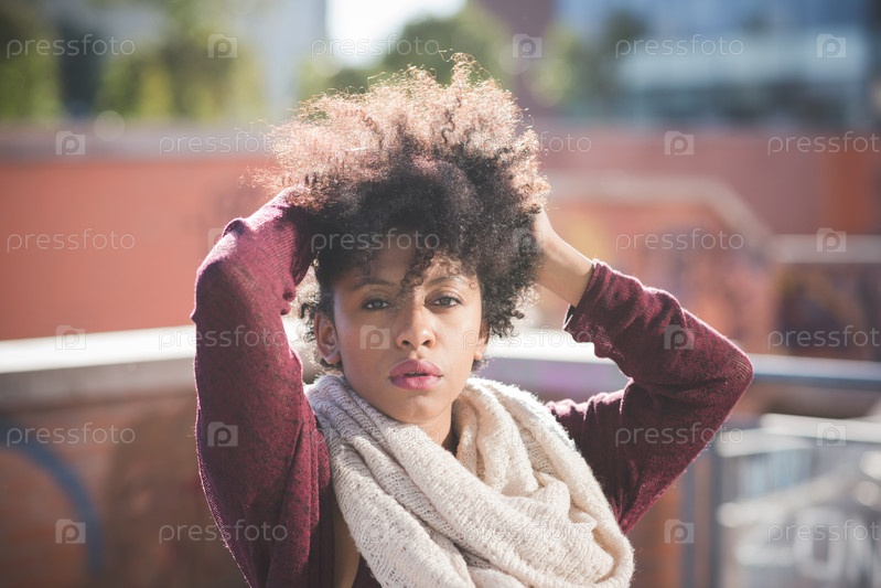 Красивая темнокожая женщина с кудрявыми волосами