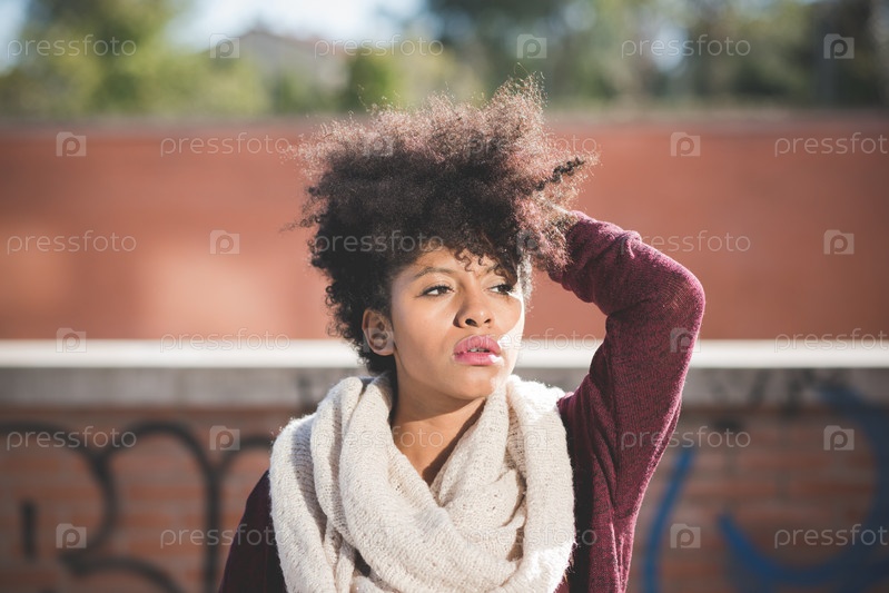 Красивая темнокожая женщина с кудрявыми волосами