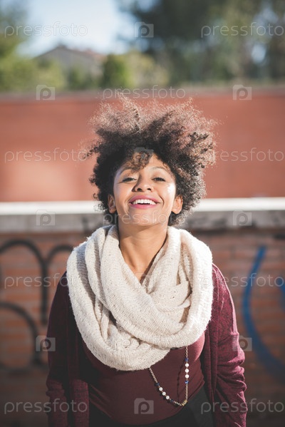 Красивая темнокожая женщина с кудрявыми волосами