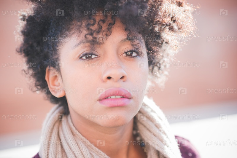 Красивая темнокожая женщина с кудрявыми волосами