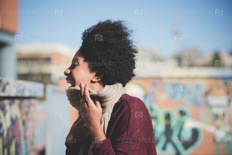 Красивая темнокожая женщина с кудрявыми волосами