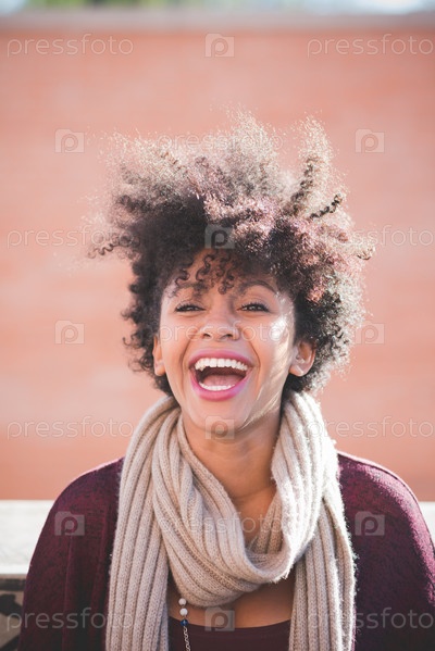 Красивая темнокожая женщина с кудрявыми волосами