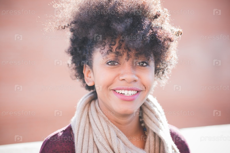 Красивая темнокожая женщина с кудрявыми волосами