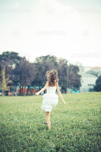Красивая молодая женщина в белом платье