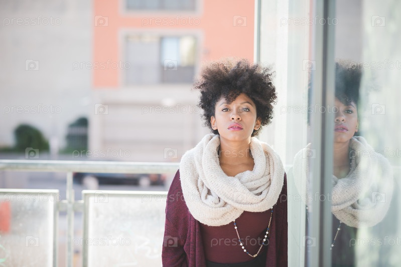 Красивая темнокожая женщина с кудрявыми волосами