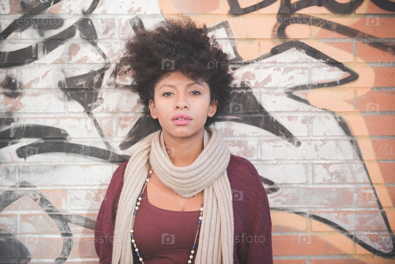 Красивая темнокожая женщина с кудрявыми волосами