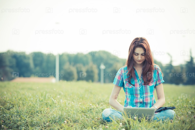 Женщина с ноутбуком и планшетом