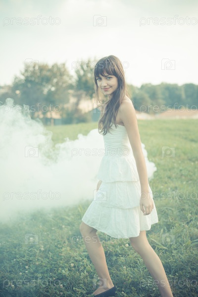 Женщина в дыму в парке