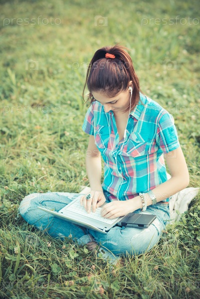 Женщина с ноутбуком и планшетом