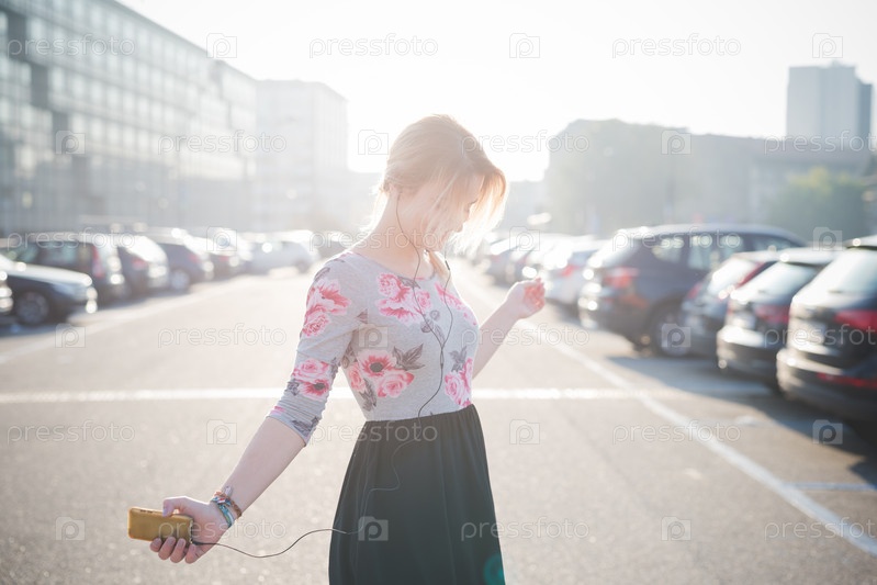 Молодая красивая блондинка на улице