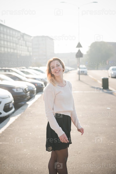 Молодая красивая блондинка на улице