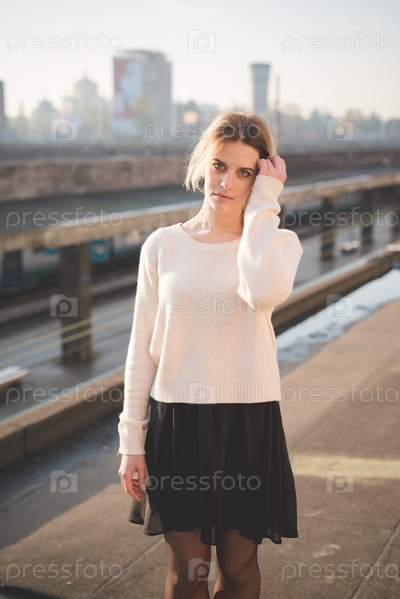 Молодая красивая блондинка на улице