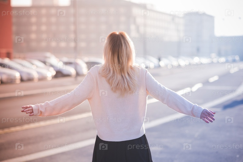 Молодая красивая блондинка на улице