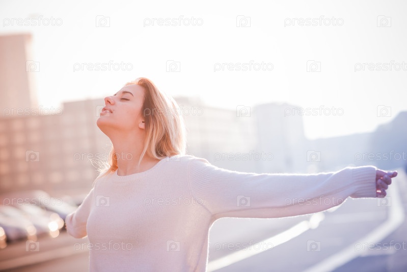 Молодая красивая блондинка на улице