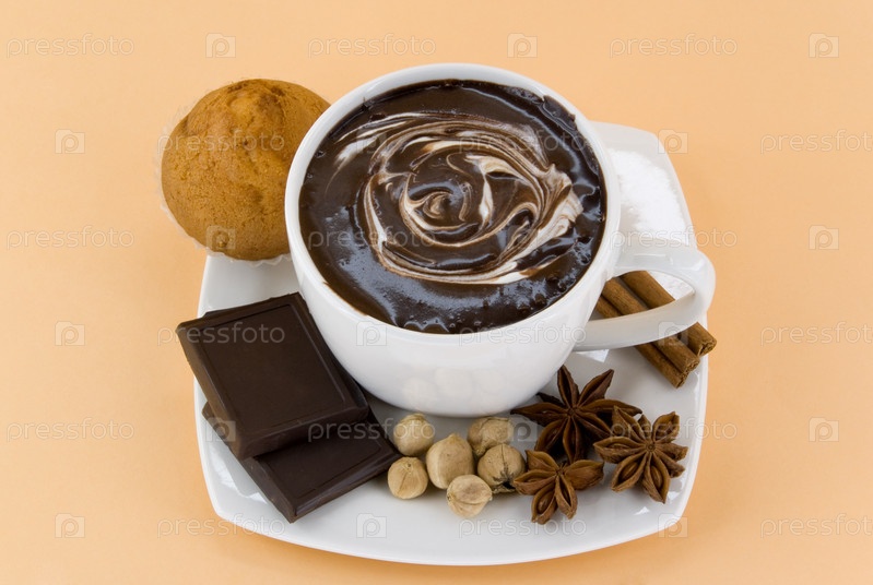 Кружка горячего шоколада с пряностями и кексом