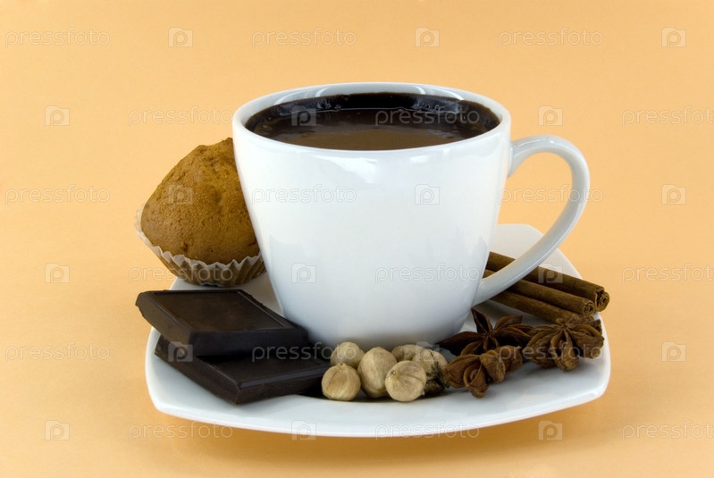 Кружка горячего шоколада с пряностями и кексом