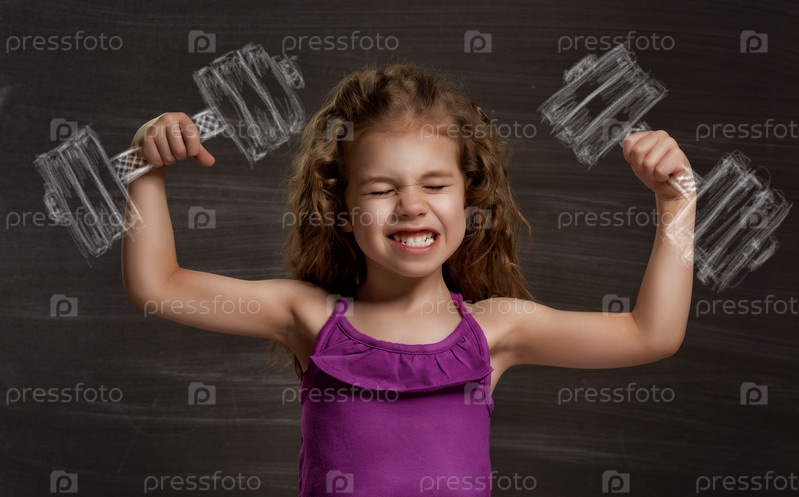Девочка с нарисованными гантелями