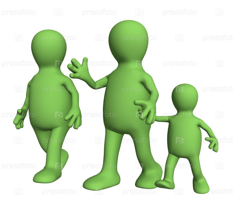 Семья стилизованных человечек на прогулке