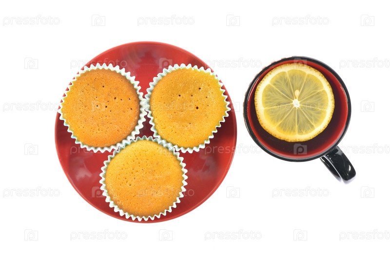 Кексы с чашкой чая с лимоном