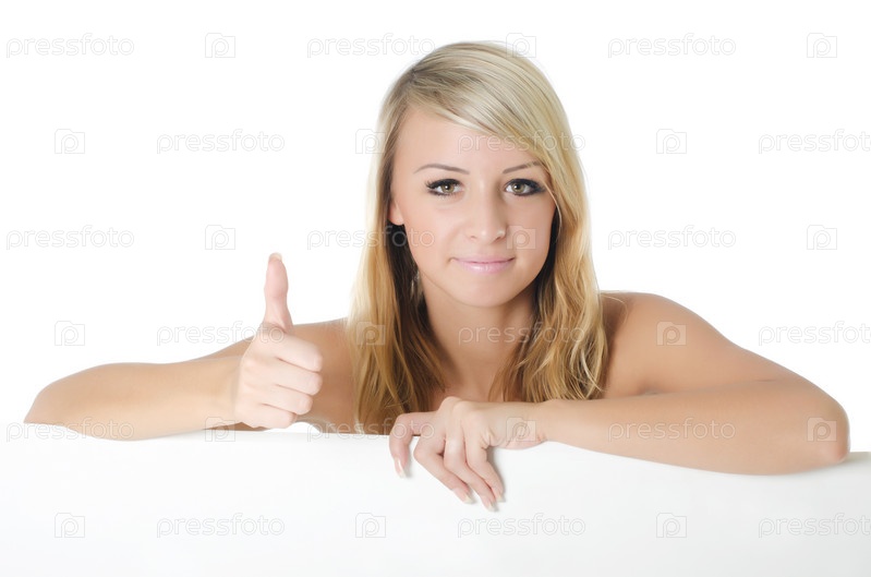 Портрет женщины, держащей пустой рекламный щит