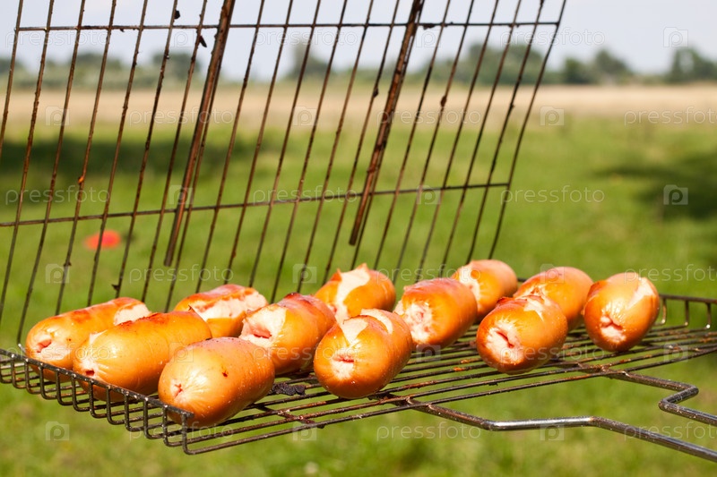 Жареные сосиски на гриле