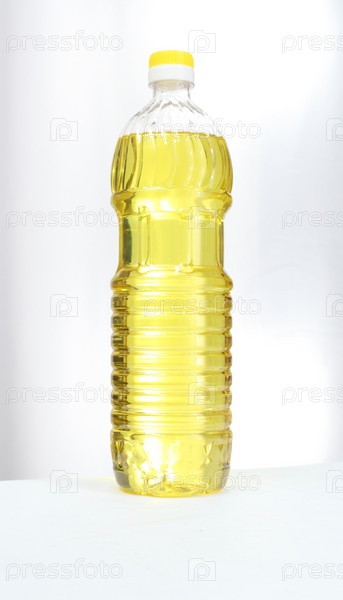 Бутылка подсолнечного масла на белом фоне