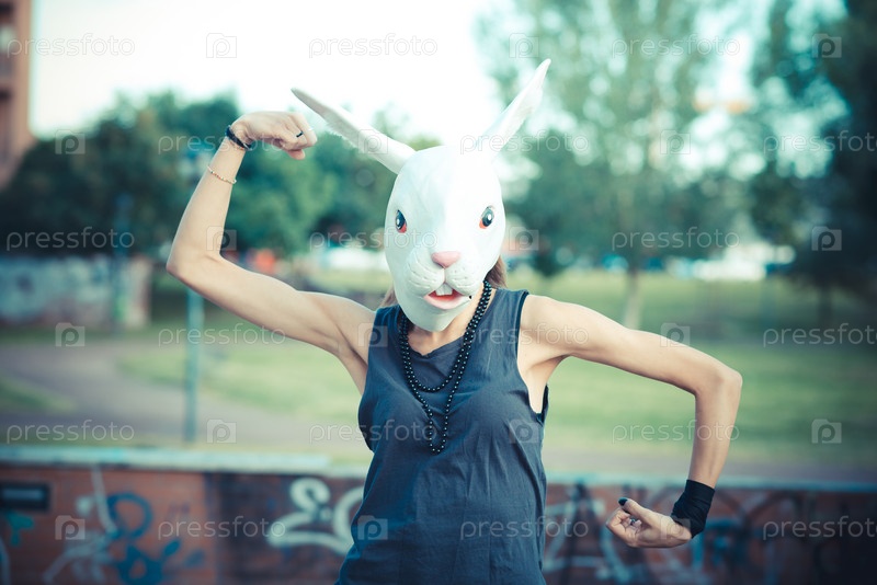 Молодая красивая женщина в маске кролика