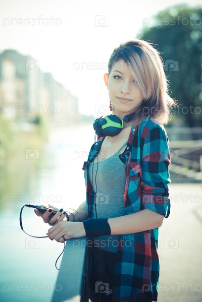Красивая стильная девушка на улице