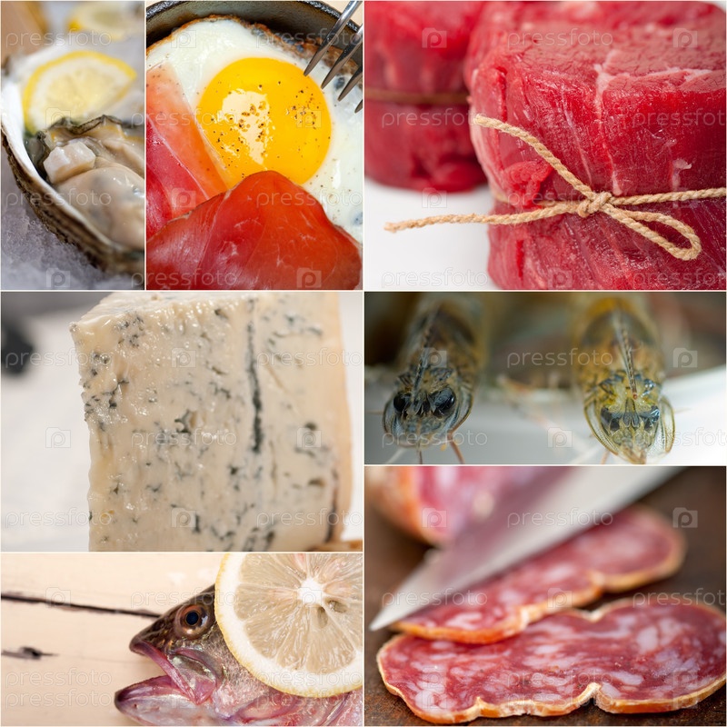 Коллаж из еды с высоким содержанием белка