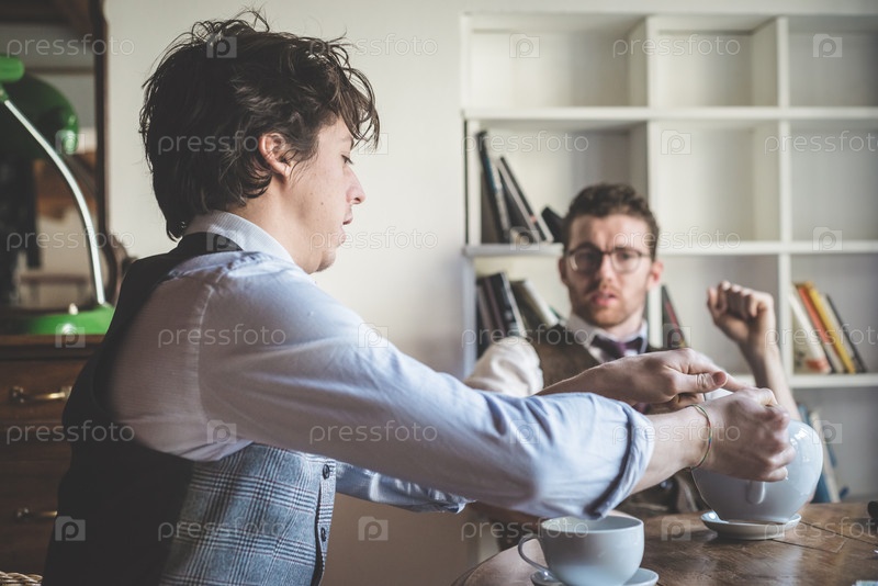 Молодые стильные мужчины в офисе