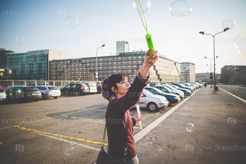 Красивая молодая женщина-хипстер на улице