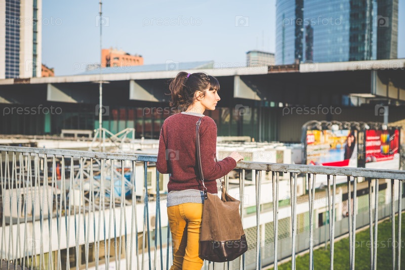 Красивая молодая женщина-хипстер на улице