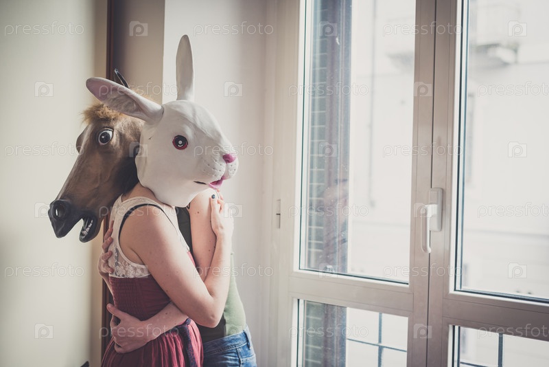 Девушки в масках кролика и лошади