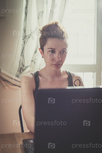 Женщина за ноутбуком