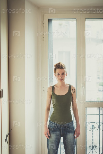 Молодая женщина с прической в лесбийском стиле